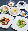 ○メイン料理二品○本日のスープ○サラダ○ザーサイ○デザート○コーヒーorソフトドリンク